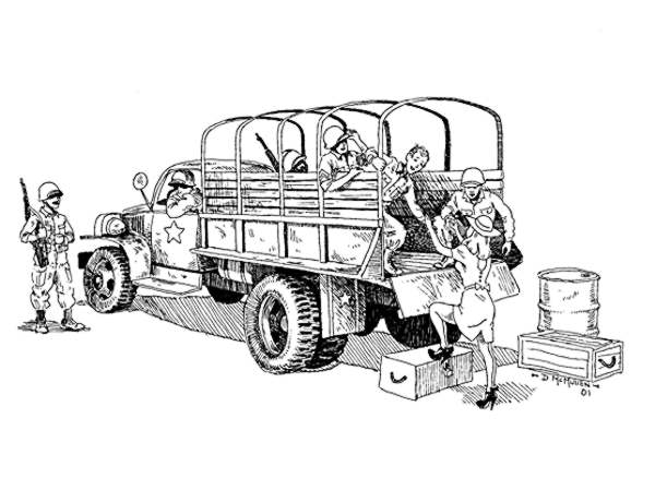 "I said get a wheelbarrow, Willie, you ass!" copyright 2001 David McMullen back to the military vehicle article