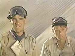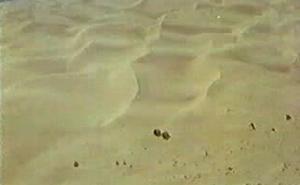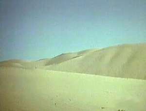 episode mission briefing for more about the Khamseen, see Meterology) The surface of sand is often rippled into small roughly parallel ridges. These sand ripples form with their long axes at right angles to the wind, just like their much large counterparts, the linear dunes (there are other differences as well). Assuming Moffitt's mentioned 'surface pattern' meant sand ripples, then one assumes that the direction of the ripples over the buried dump ran perpendicular to the ripples created elsewhere in the area by the prevailing Khamseen winds. How exactly this came to be isn't clear to Suncompass, but no matter. Ripples make an interesting texture overlying the desert, and clearly Moffitt found them a useful indicator when seeking a buried fuel dump. for more about ripple, dune, and desert feature formations see http://pubs.usgs.gov/gip/deserts/eolian/