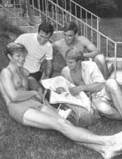 To the left is a great publicity photo of you with Chris, Hans, Justin, and a dear little baby (your child?). Do you remember this photo being taken? Is there anything you'd be willing to share about that occasion? Where was it? One wonders what you or someone might have just said to have everyone so jolly. LC: That is one of the first pictures of my daughter Melissa. The shot was actually taken out in Rye Beach, New York at a beach club that someone from ABC belonged to. This was shot just prior to leaving for Spain.